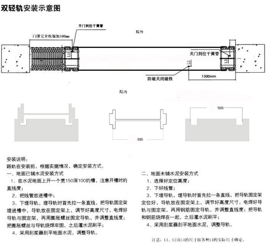 8、  机头:电机采用专业的伸缩门电机,加厚底板,增加其重量,加强牵引力;并采用四轮驱动、链条传动,自动缓冲,起停平稳;机头还采用双层密封式设计,整体密封。防尘防潮及雨水,延长电机的使用寿命。