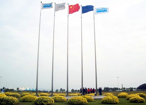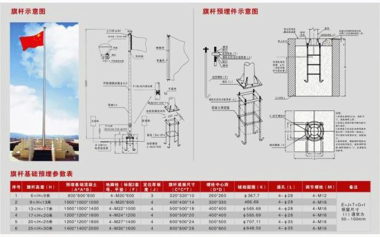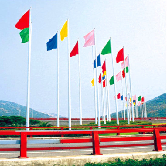 可现场接驳旗杆,采用了的分节可拆式技术、一种升旗装置及其传动技术、360度顺风球冠技术。有可拆式和锥形一体两种外形。材料由高强度纯铝合金材料或者不锈钢作为旗杆管材,具有质量轻而且强度高,铝合金旗杆表面采用的最先进的氟碳喷涂处理技术,不锈钢材质旗杆使用环形拉丝。使得产品表面质感匀称平整、观赏性极强、防护性与耐候性强。其高度智能化自检系统和高度自动化控制技术,加上360度顺风旋转抗强台风设计大受各个厂矿、企事业单位、生活小区、车站、海关码头、学校、体育场馆、高级酒店、城市广场等高级礼仪场所的青睐。
