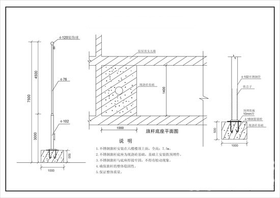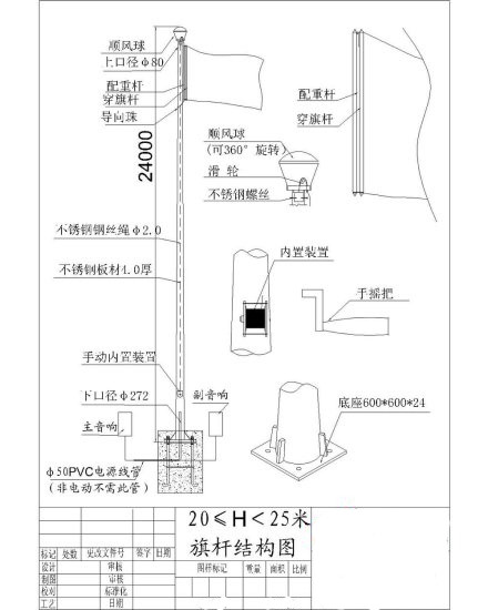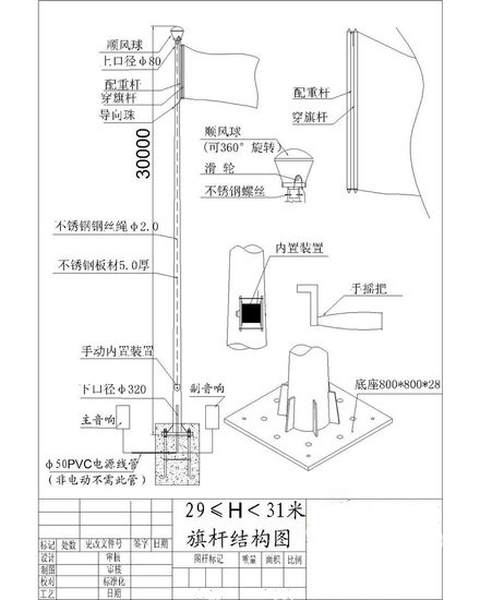 2.360度顺风球冠装置:旗杆这一技术的运用旨在使得红旗在顺风逆风情况下都不至于使得红旗折叠甚至打结,此装置设计精度高转动灵活,使用寿命长。